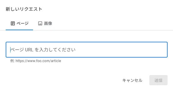 Search Console(サーチ・コンソール)の キャッシュ削除のページでは、以下の手順で必要な項目を入力します。